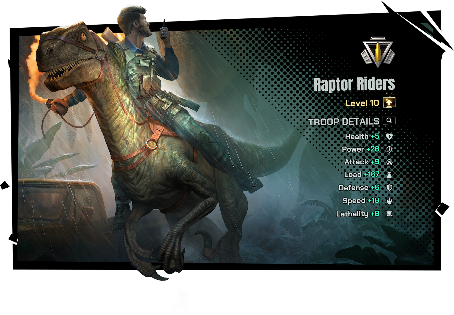 - Assemble / Train / Collect / Research. Build your own dinosaur park and troops.